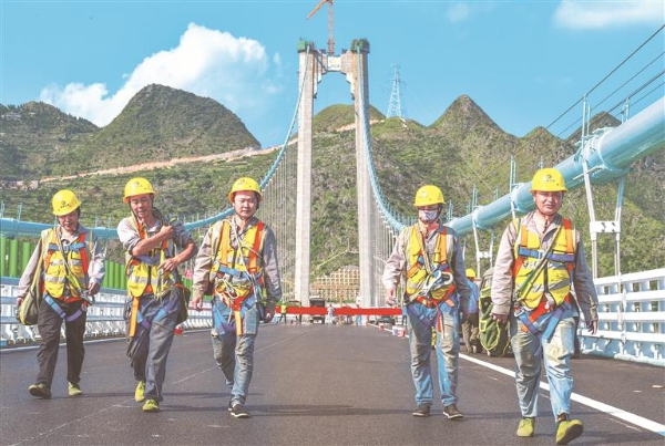 花江峡谷大桥是贵州六安高速公路的控制性工程,全长2890米、桥面距水面高625米,预计今年9月底建成通车。大桥建成后,不仅主桥跨径居山区桥梁跨径世界第一,桥梁高度更是刷新世界纪录,成为“世界第一高桥”。在这“云端战场”,中国“基建狂魔”其实是一个个平凡的身影。他们以山为伴,与风共舞,在常人望而生畏的绝险之地,将每一个螺栓的扭矩值、每一寸焊缝的均匀度、每一道涂装的完美附着、每一处构件的精准定位,都淬炼到极致。(记者 陈慧 李枫 旷光彪)