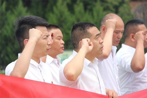 物流党支部党员在三线博物馆重温入党誓词,践行初心使命。