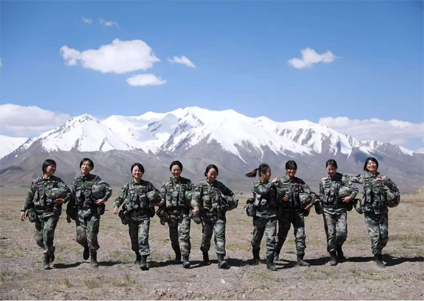 刘爱珍(右一)在雪域高原训练结束后的合照。