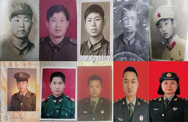 堂屋的墙壁上,十张军人照整齐排列,面庞坚毅,目光坚定,身姿挺拔,宛如一支即将出征的队列,静静伫立在那里,诉说着两代人跨越六十载累计100年兵龄的热血传奇,诠释着“十颗赤心永向党”的忠诚誓言。