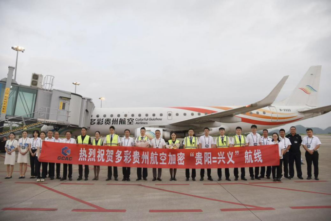 多彩贵州航空于8月10日起,每周加密7班贵阳往返兴义的航班,加密后贵阳=兴义航线由原每周18班提升至每周25班。贵州民航集团党委委员、副总经理张鹏出席航线加密仪式。