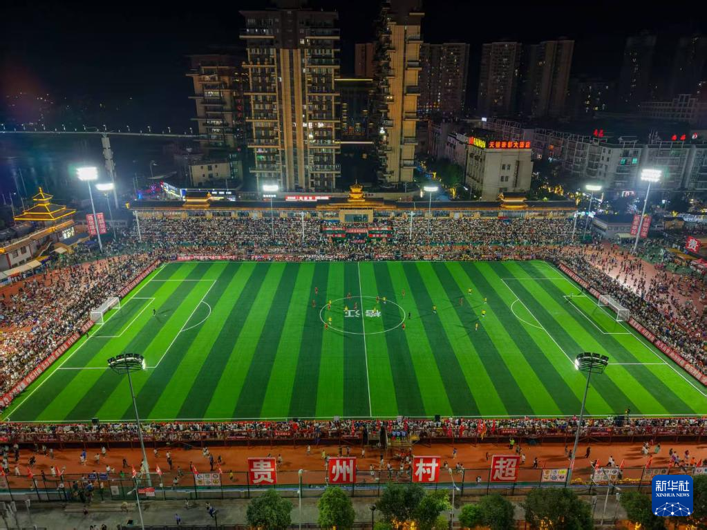 这是8月9日拍摄的2025年贵州村超总决赛比赛现场(无人机照片)。龙建睿 摄