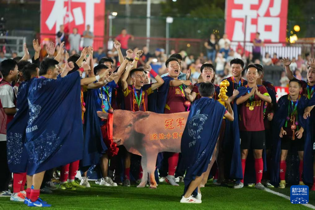 8月9日,忠诚村队球员在比赛结束后庆祝夺冠。龙建睿 摄