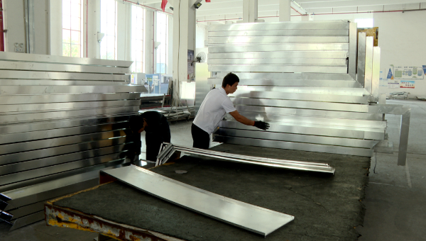 盛夏时节,走进位于普定经济开发区的贵州镁程铝业科技有限公司生产车间,机器轰鸣声不绝于耳,工人们正在紧张工作中。一张张铝单板在冲孔、折弯、喷涂、雕花等多道工序中缓缓成型。目前,该公司接到了来自全国各地数千万元订单,正在大力赶制中。