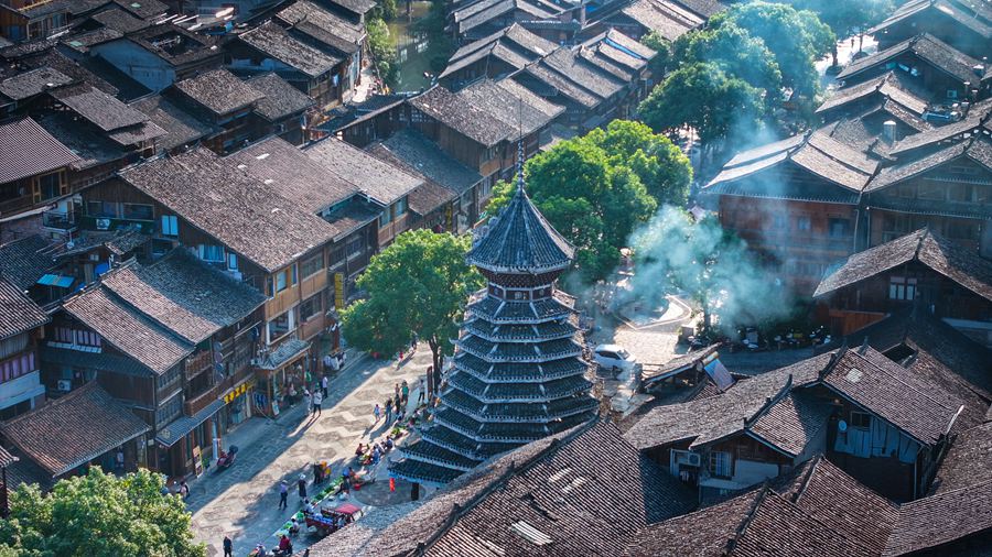 肇兴侗寨一景。新华网发(赢光万 摄)