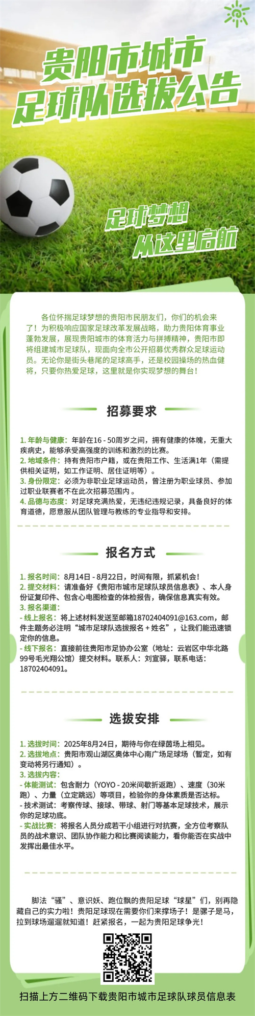 是时候展现真正的技术了,贵阳市城市足球队选拔公告已下达,就等你了!-新华网