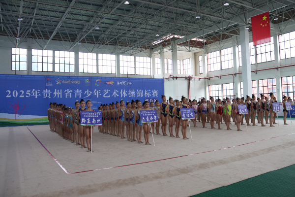 8月13日,2025年贵州省青少年艺术体操锦标赛在三都县高平凤凰实验学校体育馆开幕,来自贵阳、遵义、六盘水、毕节、黔东南、黔南六支代表队的139名运动员参赛。