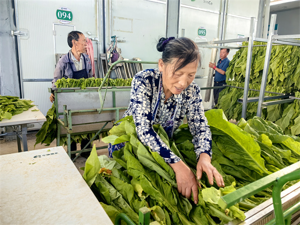 在林泉镇高锦村烘烤工场,一座座现代化的烤房整齐排列,火力全开,采收后的烟叶被迅速运往这里。烟农们将采摘回来的烟叶进行分类、编杆,然后小心翼翼地送入烤房进行烘烤。