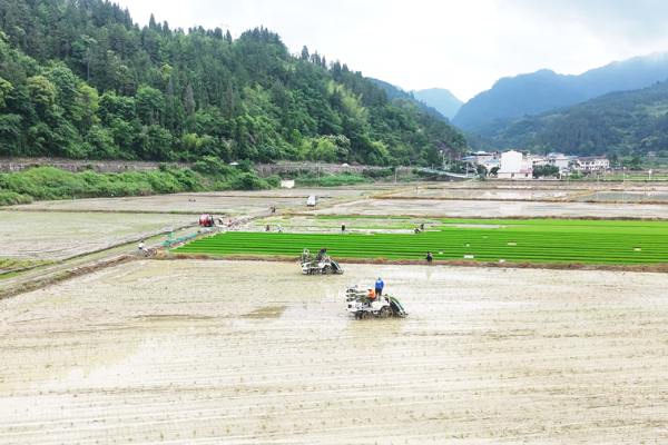 思旸镇磨寨村水稻制种基地进行机械化育秧。(李昌焯 摄)