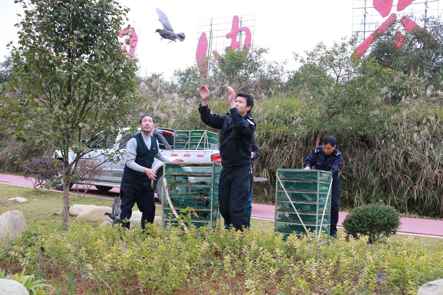 玉屏县森林公安释放400只“三有”鸟类。新华网发(贵州省公安厅供图)