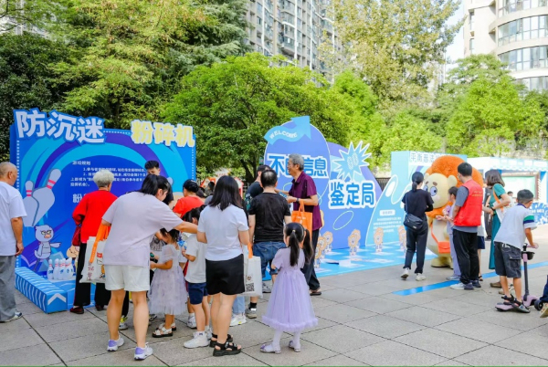 活动现场,市民王女士正带着儿子体验“防沉迷粉碎机”游戏。“用保龄球击倒诱导孩子沉迷的游戏、信息等话术瓶,亲手粉碎沉迷陷阱的设计太巧妙了,孩子玩一遍就记住了要拒绝网络沉迷,通过其他的普法知识小游戏记住了诈骗话术,记住了法律维权的渠道。”王女士说。