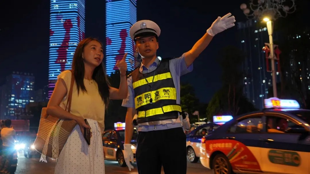 “这么热的天,交警同志一直在太阳底下指挥,太不容易了!”江西游客陈女士的感叹,道出了诸多游客的心声。