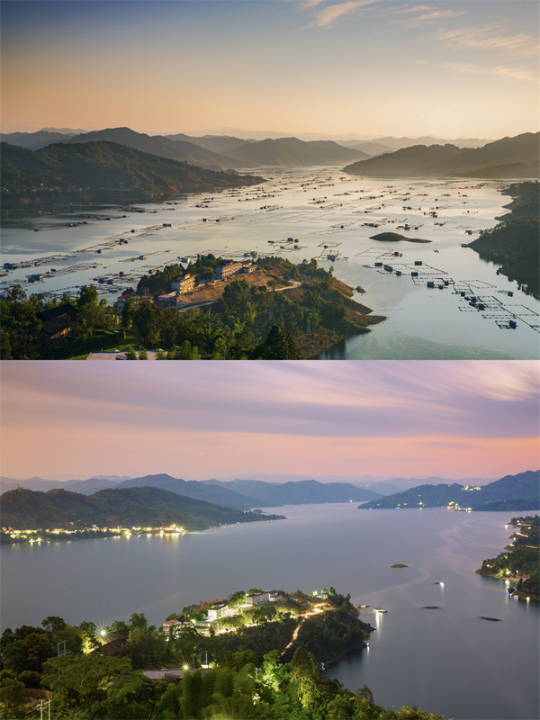 2016年(上图)与2018年(下图)黔西南州安龙县万峰湖镇巷湾村万峰湖治理前后的变化。杜福仁 摄