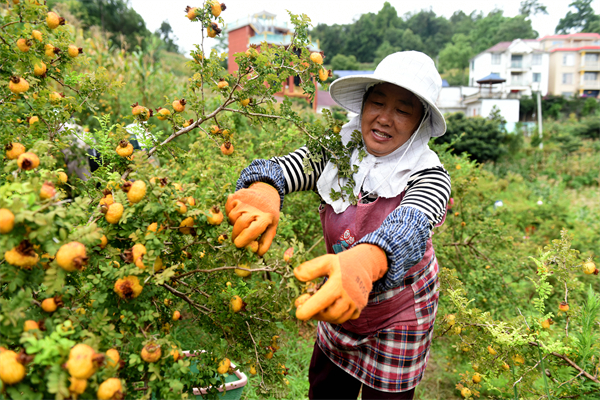 农户正在采摘刺梨。黄庆松 摄