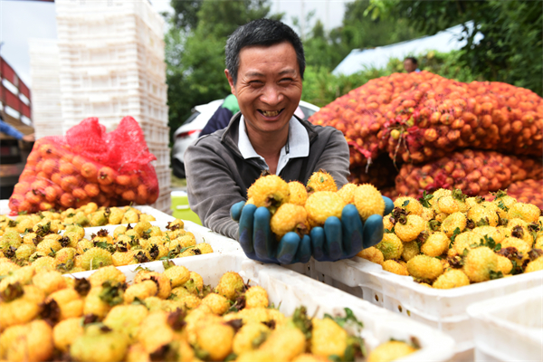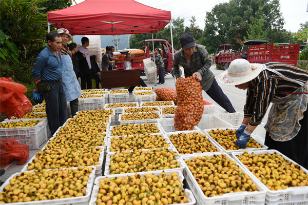 农户正在分装刺梨。黄庆松 摄