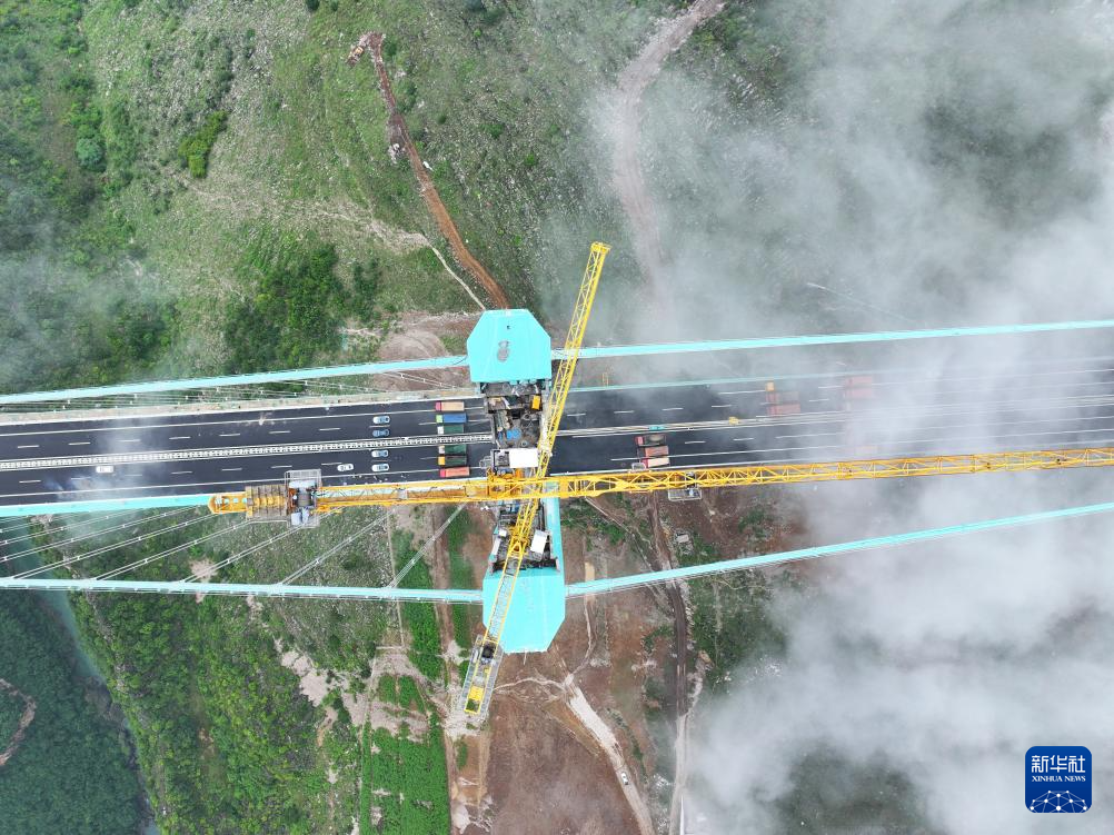 8月21日拍摄的贵州花江峡谷大桥荷载试验现场(无人机照片)。新华社记者 欧东衢 摄