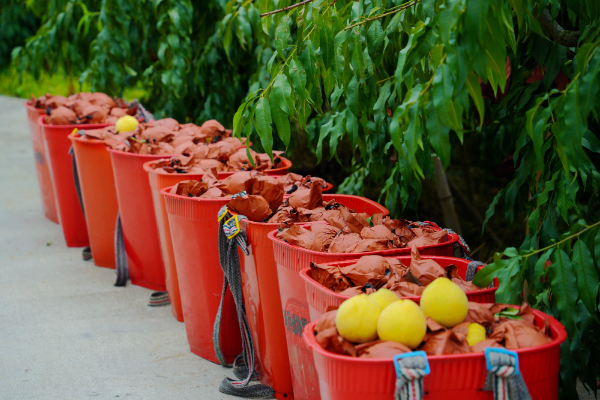 8月18日,走进瓮安县猴场镇大金星村老兵蟠桃园基地,1500亩黄桃绵延几个山头,300余名工人背着背篓穿梭在桃林间,忙着采摘鲜桃;山下的分拣中心里,火热的场景更胜一筹,分拣、装箱一气呵成,印着“老兵蟠桃”字样的礼盒堆成了小山,等待着装车发往全国各地。老兵蟠桃园是瓮安县最大的黄桃种植基地,主要种植品种为锦绣黄桃。由于基地海拔较高,温差较大,种植出来的桃子个头大,口感香甜,不仅在瓮安县有较高的知名度,在省内外也小有名气,每到黄桃采摘季,都有不少外地商家前来进货收购。