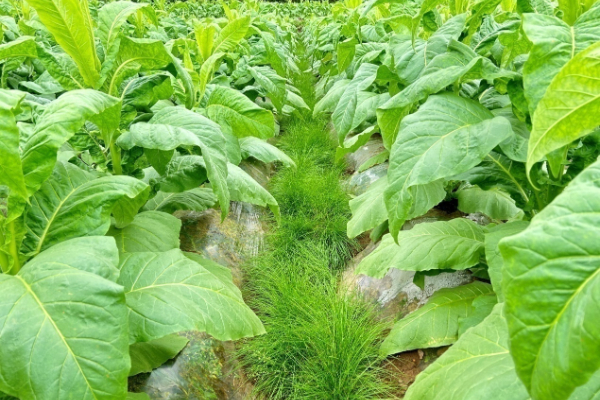 示范烟田实施以草抑草技术。
