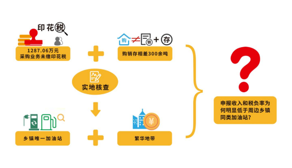 前期,铜仁市税务局稽查局通过税收大数据分析发现,2020年至2022年期间,鱼塘加油站购进油品发票金额达1287.06万元,却从未就该采购业务申报缴纳印花税,这一明显的税费缺失情况引起税务部门的关注。