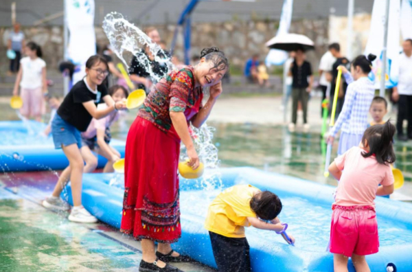 在泼水大战环节,大家纷纷拿起手中的水盆、水枪等泼水工具快速装满水,待主持人一声令下,快速泼向前来参加活动的人。他们时而躲闪、时而泼水,兴奋不已。加上MC现场指挥、DJ音乐烘托,让大家不仅释放了压力,也享受到了清凉的快意。