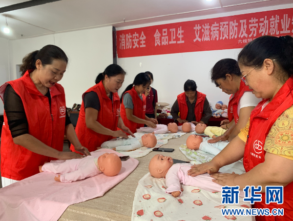 学员练习育婴相关操作。新华网发(陈又华 摄)
