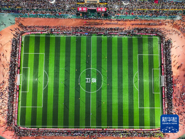 这是8月23日拍摄的首届“村超”全国赛总决赛现场(无人机全景照片)。新华社记者 杨文斌 摄