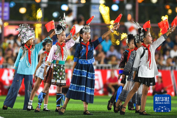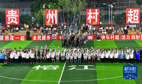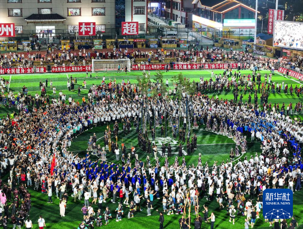 8月23日,2025年首届“村超”全国赛总决赛在贵州榕江县“村超”球场举行。广东肇庆金利诚峻足球队2比0战胜广东和平商会足球队,斩获全国总冠军。赛事期间同时举办丰富多彩的民族歌舞展演、无人机表演、大型烟花秀,吸引数万观众现场观赛。