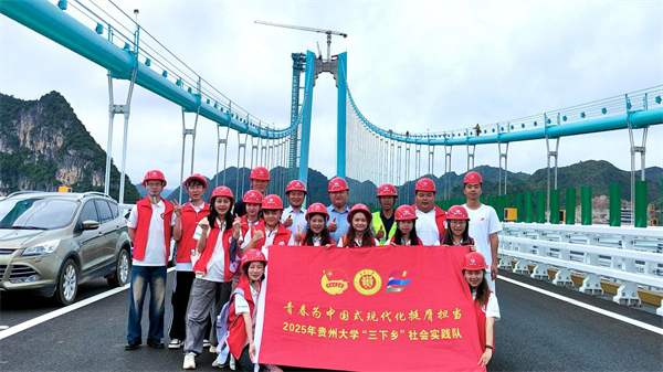 “从国情出发,从中国实践中来、到中国实践中去,把论文写在祖国大地上,使理论和政策创新符合中国实际、具有中国特色。”8月17日至8月22日,在贵州大学马克思主义学院刘玉高、王勇等老师的带领下,“桥旅黔行·花江启航”实践团队赴贵州省黔西南布依族苗族自治州贞丰县平街乡花江村,开展大学生暑期文化科技卫生“三下乡”社会实践。活动聚焦桥旅融合赋能乡村振兴建设,深入田间地头、桥梁工地与红色基地,以走访、座谈等方式了解现状、调查问题,为乡村振兴战略实施提供智力支持。同时,结合团队成员学习专业的特点,赴贞丰县丰茂街道西城社区爱心托管中心进行大中小学思政课一体化建设调研座谈,用实际行动诠释了新时代贵大青年的责任与担当。