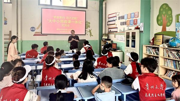 8月20日下午,实践团队前往贞丰县西城社区,在社区爱心托管中心与当地中小学生共同开展了一场“大中小学思政课一体化”主题交流活动。在互动过程中,团队注意到大中小学思政课一体化建设面临一些现实挑战,如乡村小学思政专职教师数量有限、思政课时难以得到充分保障等。尤其是孩子们普遍表现出对“走出课堂”式实践教学的强烈渴望,期望能够通过更贴近现实、更具参与感的体验方式接受思政教育。此次交流为进一步落实大中小学思政课一体化建设提供了有益的参考。
