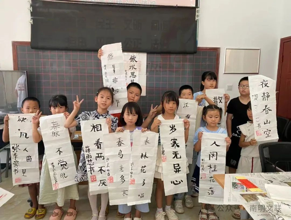 8月22日,由南明区文联、永乐乡联合上海交通大学“墨韵黔行——‘书香中国’文化浸润之旅”暑期实践团共同举办的书法公益课堂活动在永乐乡综合文化站开展。该活动以“专业讲解+实践互动”的形式,为当地10余名孩子带来了一堂生动鲜活的传统文化启蒙课。