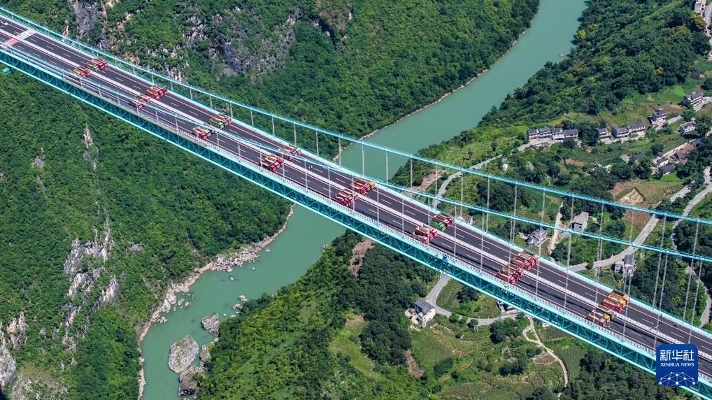 8月25日拍摄的贵州花江峡谷大桥荷载试验现场(无人机照片)。新华社发(陈熙摄)