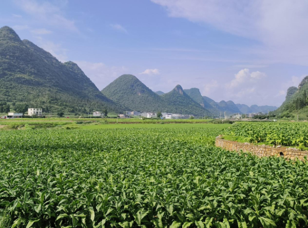 片霞侵落日,繁叶咽鸣蝉。兴义市楼纳烟区产业综合体1700余亩烟田绿浪翻涌,一片片烟叶在喀斯特地貌间吸足养分泛着成熟的油亮金光,承载着烟农对美好生活的幸福向往。