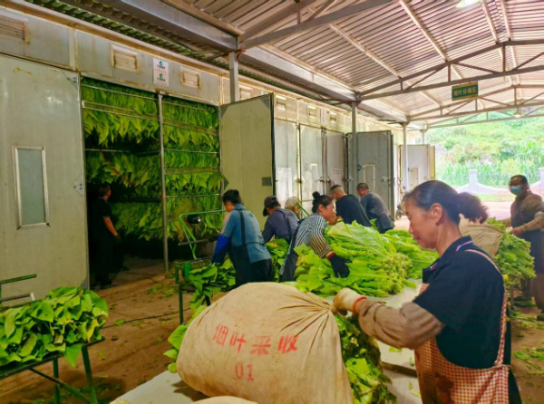 在集中烘烤点,烘烤师刘朝洋正娴熟地指挥着工人对新鲜烟叶进行专业化的分类编杆,忙中却有序,“娴熟”二字的背后是长期实践积累的技术沉淀与经验支撑。“每年公司都统一给我们烘烤师培训,合格了才能上岗。烟农把烟叶送来,我们组织工人分装、编杆,再进行专业化烘烤,确保质量,争取给农户带来更多收入。”这种“采烤分一体化”的专业模式成效明显。万鲁烟叶站技术员杨龙兵也补充道:“今年整体烘烤效果非常好,无论是烘烤质量还是进度,都明显优于往年。”