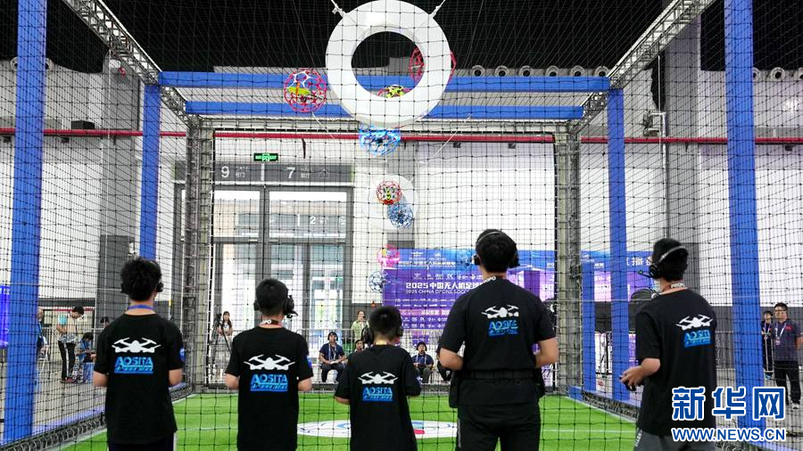 比赛现场,参赛队伍操控装有球形保护框的无人机在特制笼区内展开竞技,通过将无人机足球射入对方球门得分。多支专业队伍的精彩演示,展现了无人机飞控技术与团队协作的完美结合。