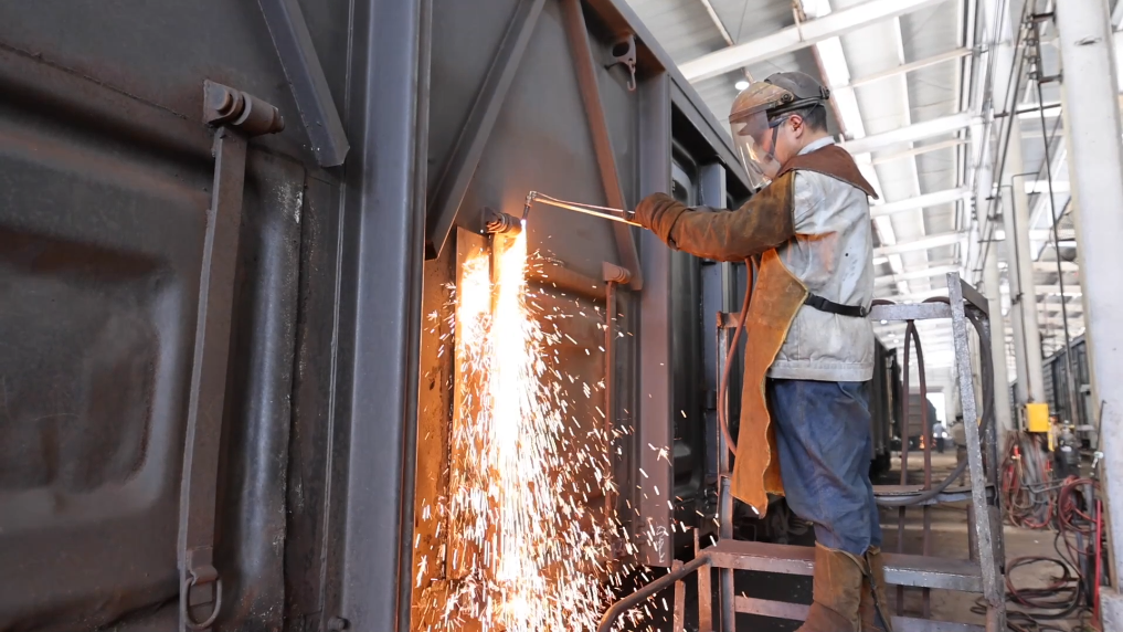 国铁成都局贵阳南车辆段主要负责贵州区域货车检修工作。由于夏季电煤车、粮食车的集中检修任务和相关技术改造工作的要求,修车车间的熔焊工们手持电焊枪,在电光火石之间,为货车“整形”“换衣”。