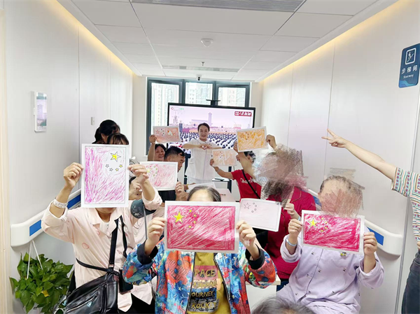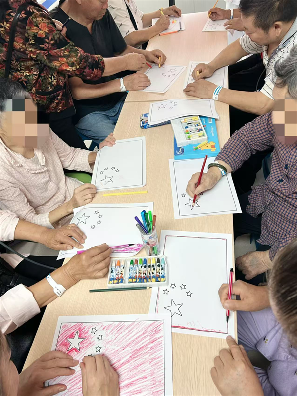 作业治疗师王玥一边指导老人们绘制国旗,一边介绍:“大家看,国旗上有五颗星,大星代表中国共产党,四颗小星代表全国各族人民……”87岁的张爷爷虽然患有阿尔茨海默病,但在绘制国旗时却异常专注:“我经历过战争,知道这面红旗来得多么不容易。”