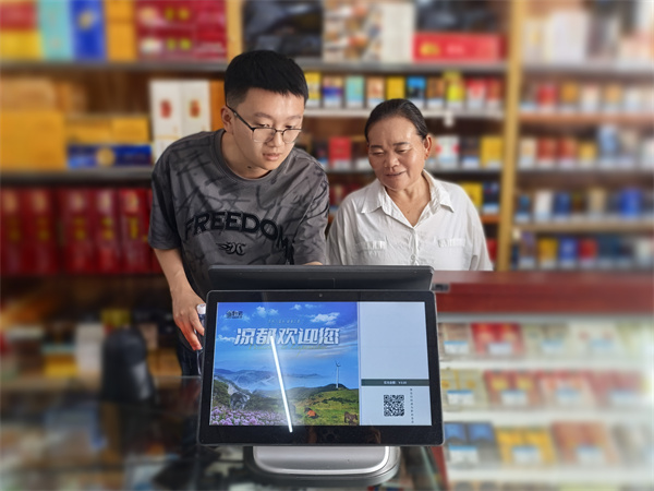 为帮助零售客户摆脱经营困境,共享数字化时代红利,六盘水市烟草公司水城分公司主动联合金融机构,为景区零售终端免费投放双屏智能收银机。实现“扫码即销售、数据即上传、库存即更新”。同时指导零售客户使用手机端查看销售报表,智能提醒缺货品牌,让零售户“卖得明白、补得精准”,收银结算也更加便捷、安全、可靠。