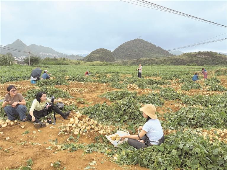 除了主播,电商平台商家也纷纷到访。“我们常年在安顺各县区收购农产品,主要做拼多多、淘宝的线上销售。”贵州觅刻穗电子商务有限公司负责人杨虎介绍,后寨村地萝卜成熟前,团队就密集联系种植户。成熟后,立马开启线上销售,第一天销量达3000斤。地边停着的货车,当天下午便将这批地萝卜拉到分拣中心,晚上就能发货。