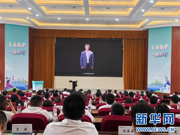 参会人员现场观看青年廉洁教育片。新华网发(伍秋红 摄)