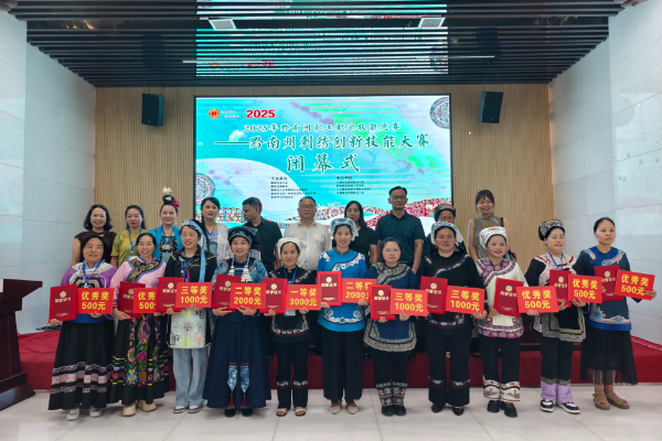 专家评委团从针法技艺、色彩搭配、创意设计、整体效果及对民族文化的传承与创新等多个维度进行评审,三都县绣娘陆荣芬获得一等奖。当天,还评选出二等奖2名、三等奖3名及优胜奖5名。
