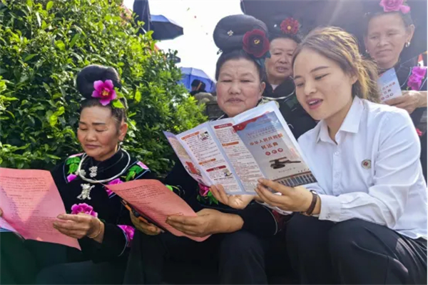 凯里市推出“124”工作法,搭建市级婚调平台,运用“八单一表”和“1+8+N”两项机制,用好四大职能,实现婚恋纠纷化解率不断提升。该市还培养了1100余名“法律明白人”,用民族语言开展普法宣传。在凯里市舟溪镇某村,我们见到了苗族妇女潘某英。她曾经因为丈夫长期酗酒而来到调解站求助。“法律明白人”王大姐先耐心倾听她的诉说,然后用苗语解释反家庭暴力法的相关规定,帮助她申请法律援助。“王大姐不仅帮我维权,还邀请村里老人和我丈夫谈话,按照苗族习惯法进行劝导。”潘某英笑着说,现在丈夫戒了酒,夫妻重归于好。更令人欣喜的是,她也成为一名“法律明白人”,开始帮助其他遇到困难的妇女。