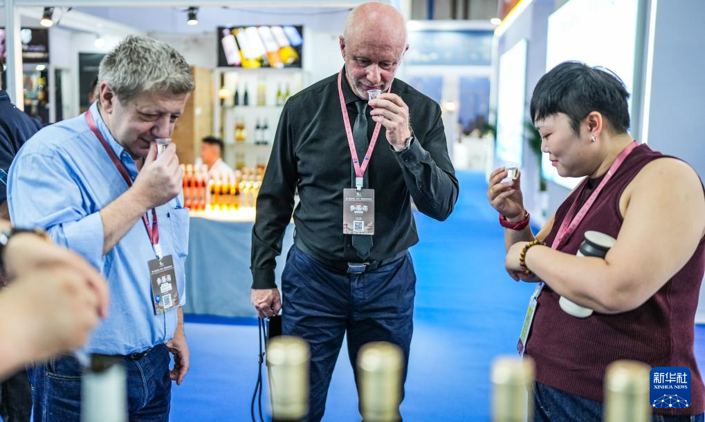 9月9日,参展商在酒博会现场品酒。新华社记者 陶亮 摄
