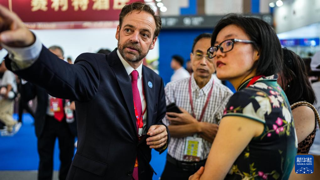 9月9日,参展商在酒博会现场洽谈业务。新华社记者 陶亮 摄