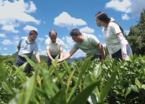 8月25日,南坪村的茶农牟真君说:“不是他们来巡查及时发现,我这茶叶明年可能减产一半。”原来,当日喻勇一行带着团队人员到南坪村茶叶基地上进行日常巡查时,发现他家的茶林里还存在几种飞虫,牟真君知晓后马上对茶园采取及时防治。