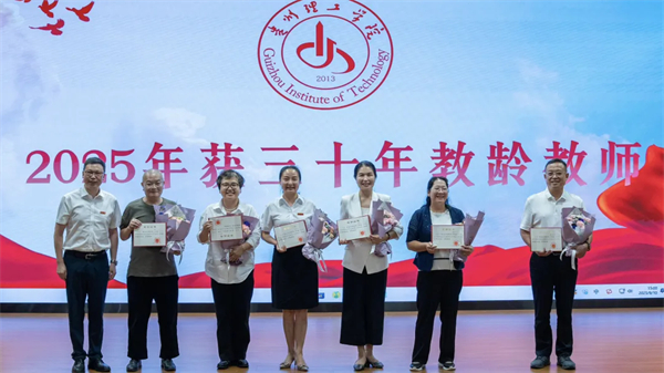 会上对贵州理工学院2024-2025学年优秀辅导员,2024年度师德先进个人,2025年优秀教师、优秀教育工作者、教学名师以及荣获三十年教龄的教师进行了表彰。