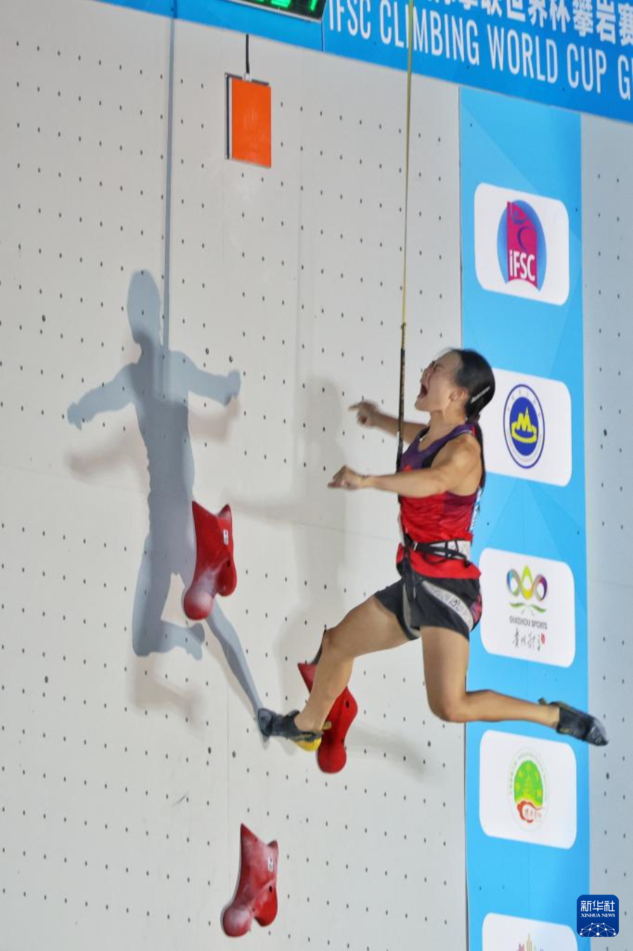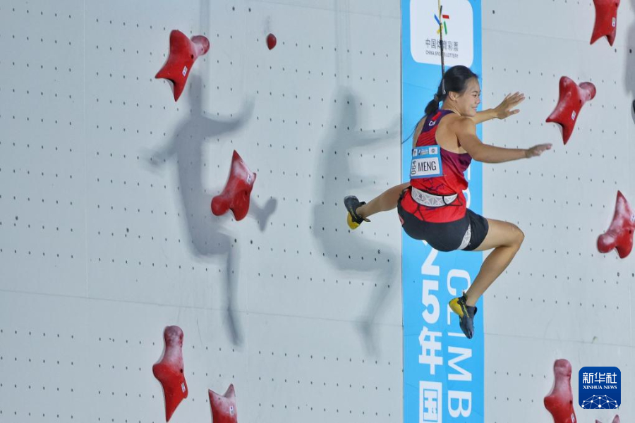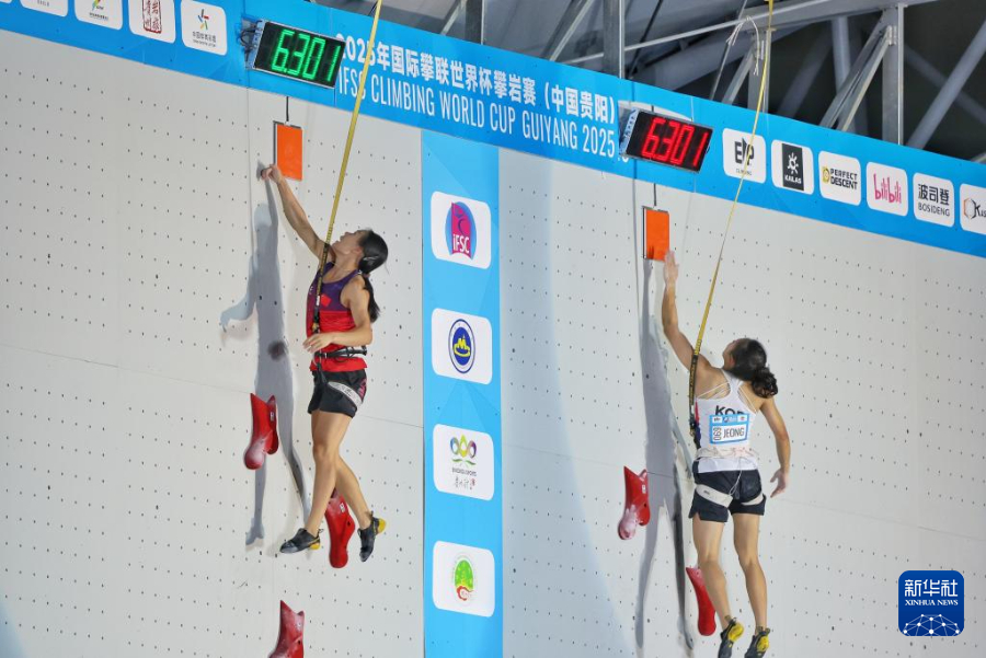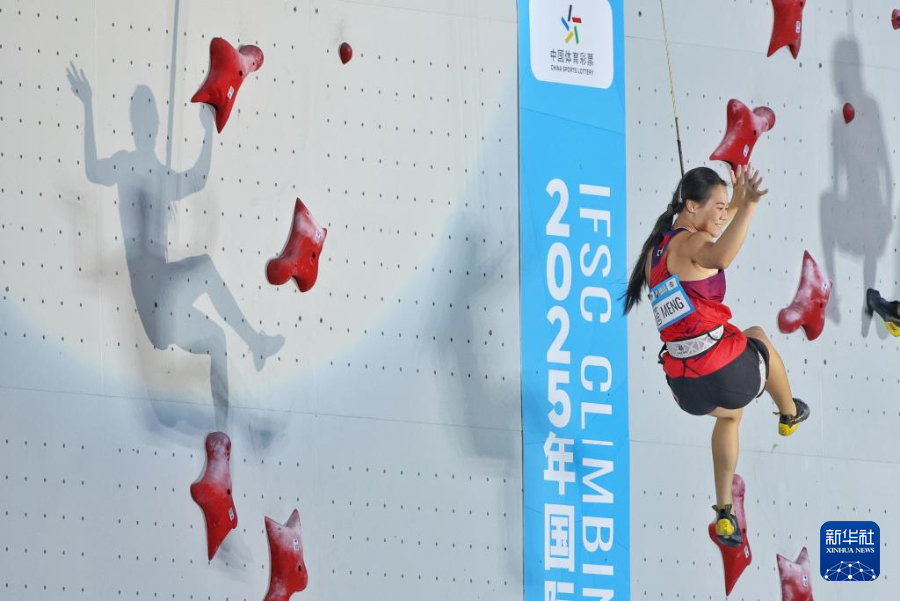 当日,在2025年攀岩世界杯贵阳站女子速度决赛中,中国选手蒙世雪夺得冠军。