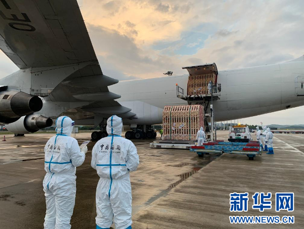 新华网贵阳9月14日电(记者周宣妮)13日,伴着夕阳余晖,一架由丹麦哥本哈根起飞装载着1078头优质种猪的波音747货运包机缓缓驶入贵阳龙洞堡国际机场指定停机位。
