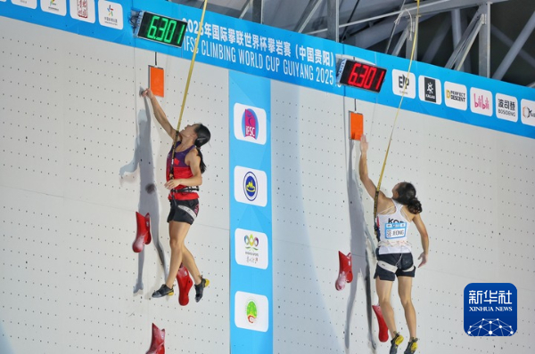 新华社贵阳9月13日电(记者罗羽)13日晚,在2025攀岩世界杯速度赛最后一站贵阳站的比赛中,中国队包揽男、女冠军。储守宏、蒙世雪分别在男子、女子组中折桂。