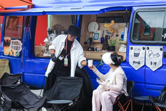 外地游客赵茗本是途经会展北路,却被现场乐队的演出声吸引驻足,意外邂逅了这场热闹活动。他笑着说:“喝了本地特色咖啡,看了精彩的火舞秀,观山湖不仅风景美,生活氛围也特别有吸引力。”