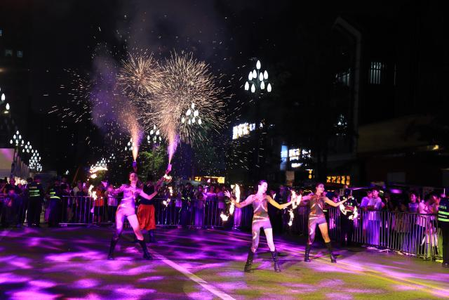 美食饮品是观山湖“精致”的味觉表达,无边界街头艺术演出便是其视觉与听觉的生动呈现。活动现场,沥青路化作舞台,舞蹈表演、乐队演唱、城市戏剧、火舞秀等节目轮番上演,为观众带来一场沉浸式感官体验。